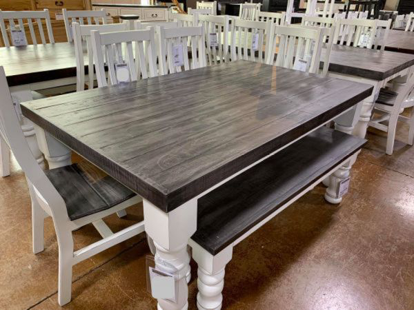 Rustic Six Foot Dining Table in Antique White with Gray Top by Wolf Trading Company