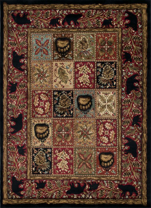 4'x6' American Destination Masters Lodge Ebony Area Rug. The American Destination collection features a 100% polypropylene pile and is stain resistant. The lodge designs are sure to add rustic charm to your home.