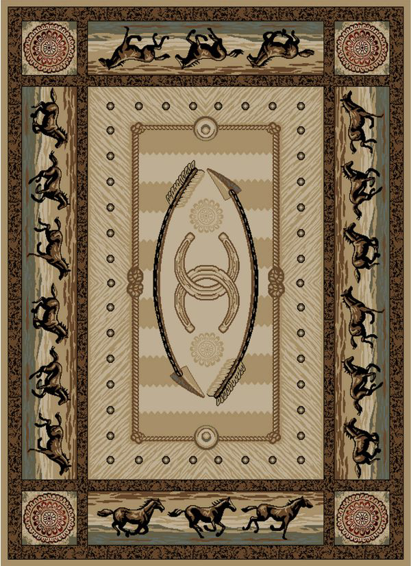5' Round American Destination Cheyenne Multi Area Rug. The American Destination collection features a 100% polypropylene pile and is stain resistant. The lodge designs are sure to add rustic charm to your home.