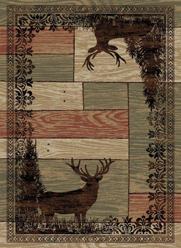 8'x10' American Destination Woodgrain Multi Area Rug. The American Destination collection features a 100% polypropylene pile and is stain resistant. The lodge designs are sure to add rustic charm to your home.