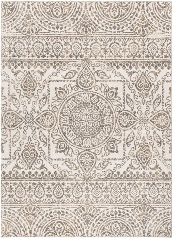 5'x8' Augusta Jaqueline Grey Area Rug. The Augusta collection features a twisted polypropylene pile to give it an expensive look at an affordable price. The gray and blue tones will go great with any modern décor.