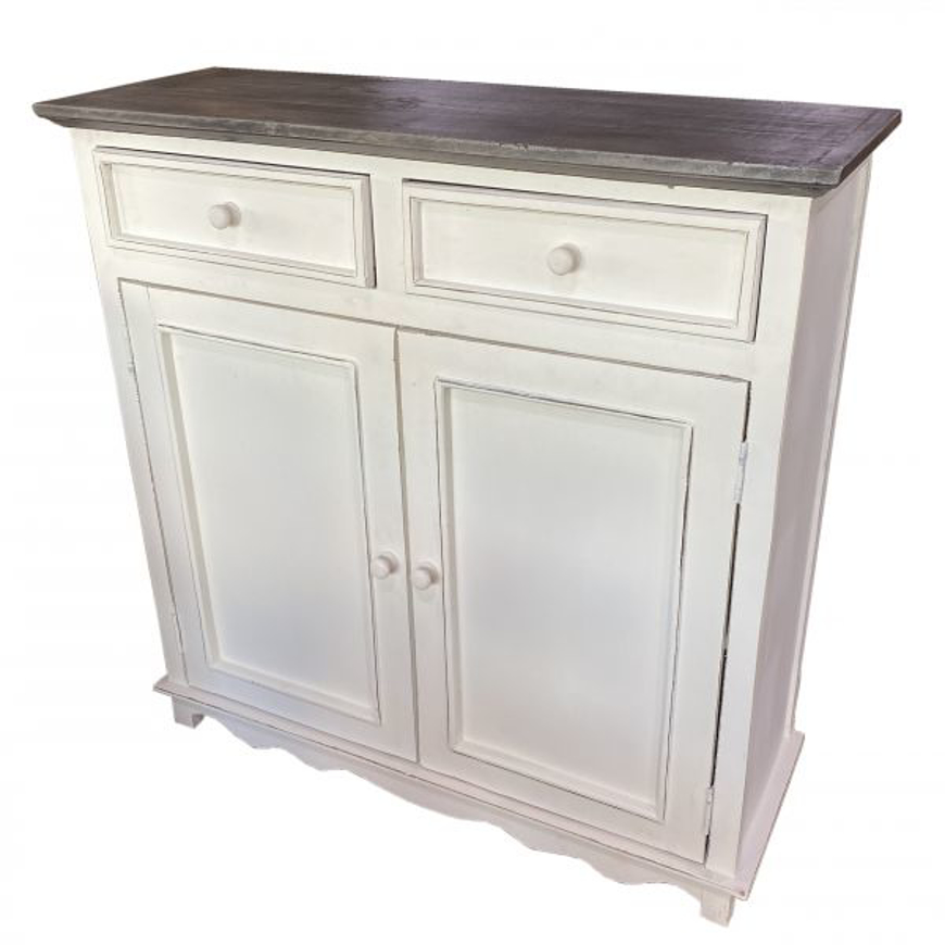 Rustic Cabinet with Two Drawers and Two Doors in Antique White with Gray Top by Wolf Trading Company