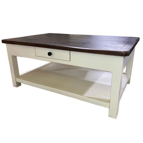 RUSTIC COFFEE TABLE IN ANTIQUE WHITE/COFFEE TOP - WO41