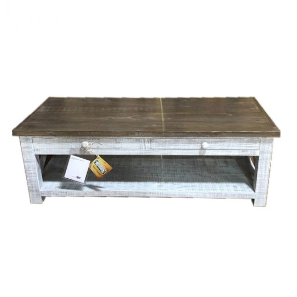 Rustic Farmhouse X Brace Cocktail Table in Weathered White with Brown Top by Million Dollar Rustic