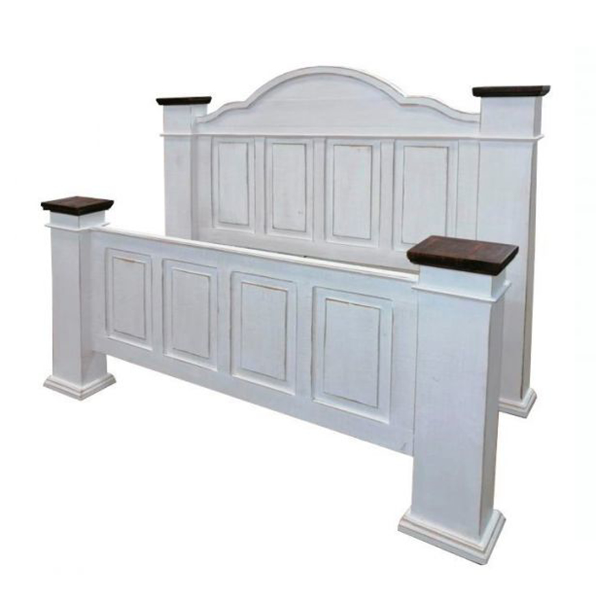 Rustic King Ana Grand Mansion Bed in Weathered White with Brown Tops by Million Dollar Rustic - MD1295