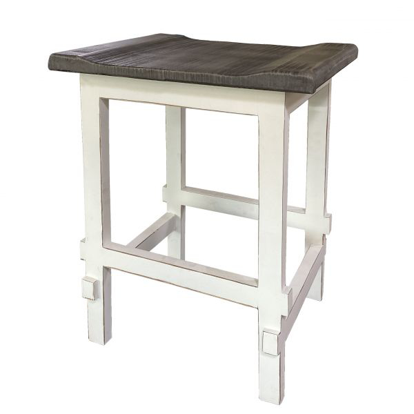 Rustic Louisiana Counter Stool in Antique White with Gray Top