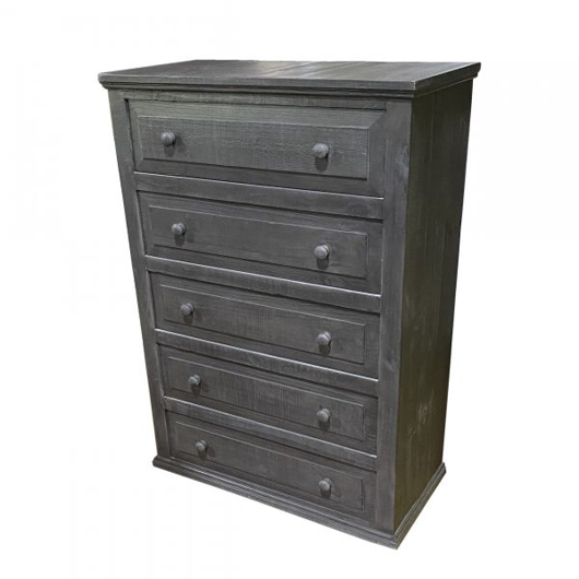 Rustic Five Drawer Chest with Wood Knobs in Charcoal Gray by Million Dollar Rustic