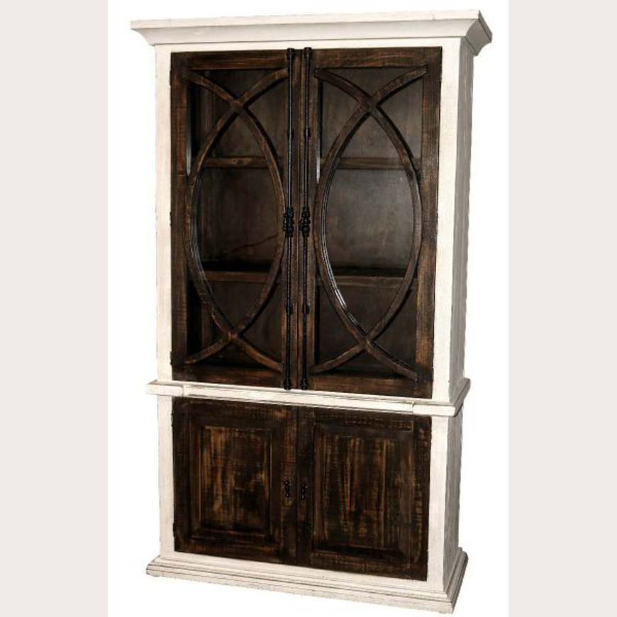 Rustic San Antonio Bookcase with Doors in Weathered White with Brown Doors by Million Dollar Rustic