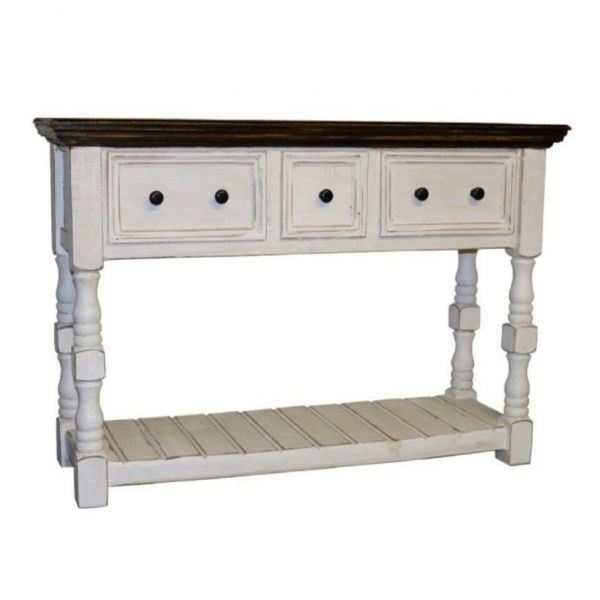 Rustic Cottage Sofa Table in Weathered White with Brown Top by Million Dollar Rustic