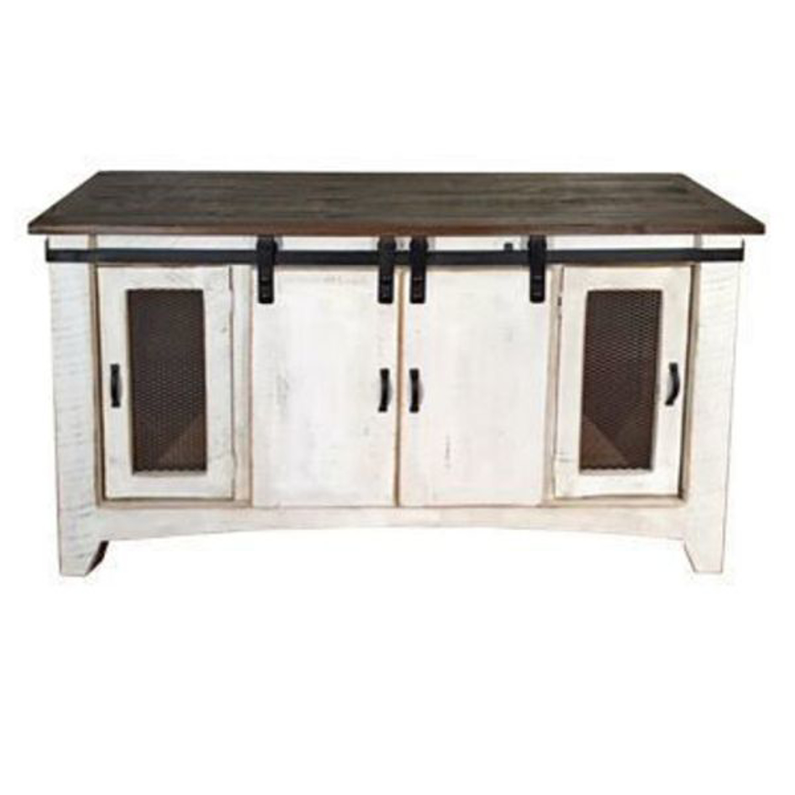RUSTIC BARN DOOR ENTERTAINMENT CONSOLE WEATHERED WHITE/BROWN TOP - MD584